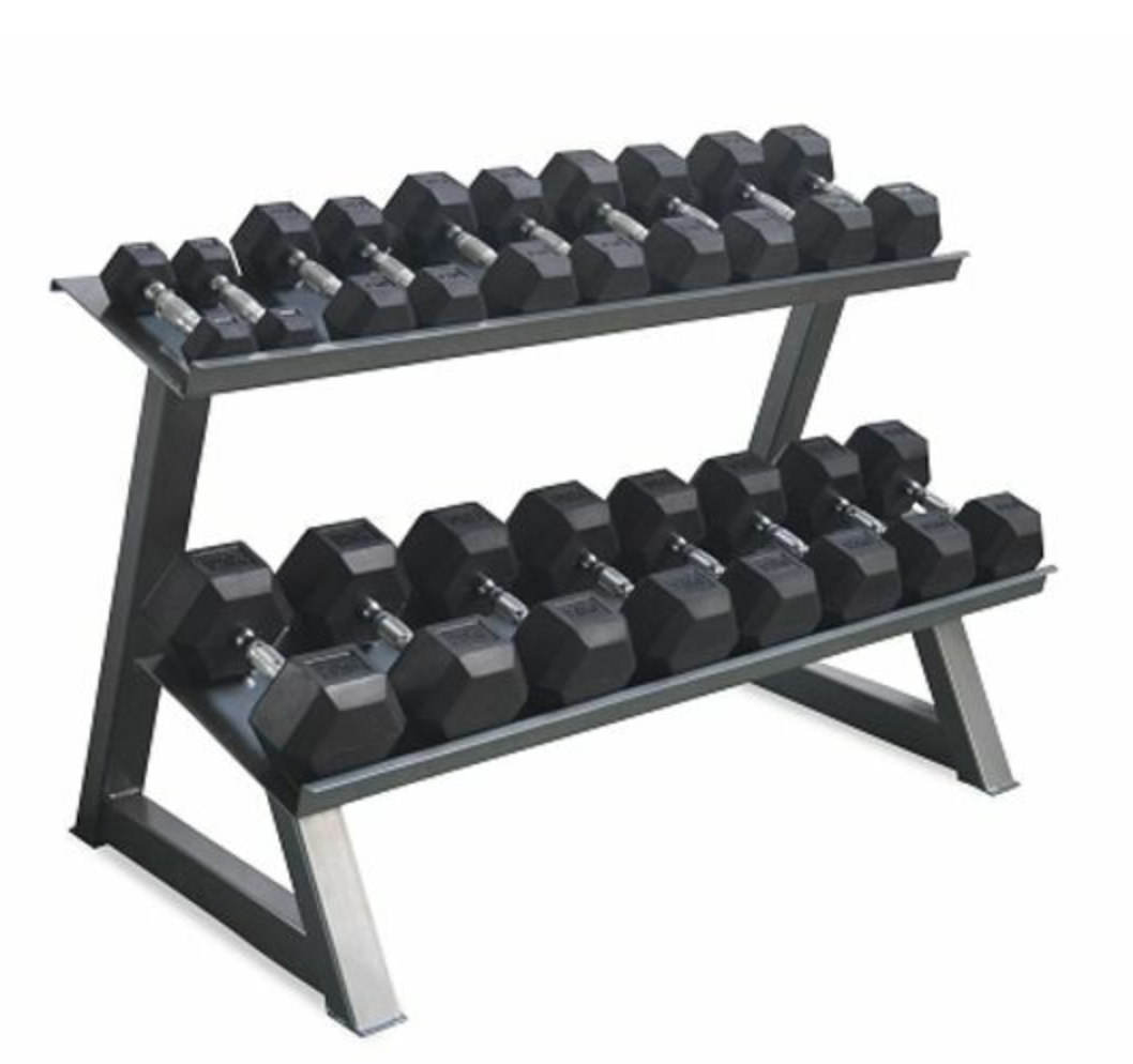 1-30KG Rubber Hex Dumbbell & 3 Tier Rack Package