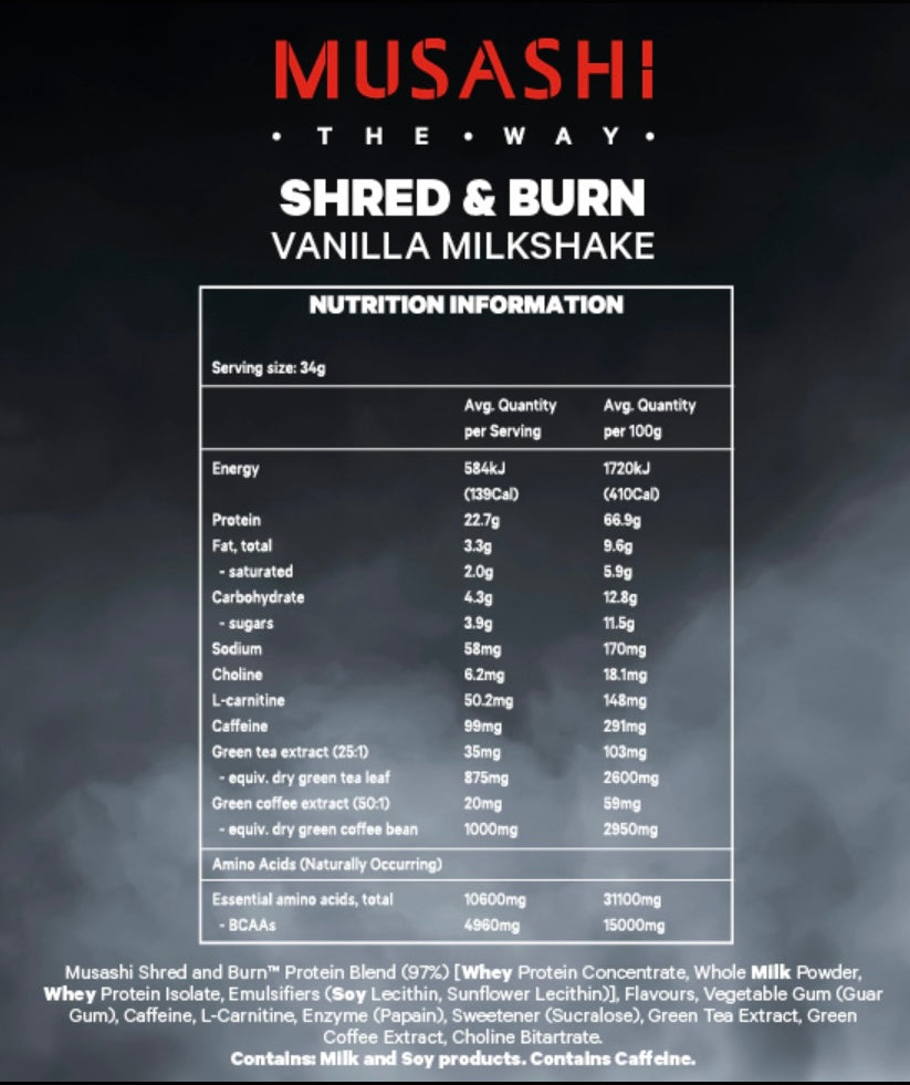 MUSASHI SHRED & BURN Protein Powder - Vanilla