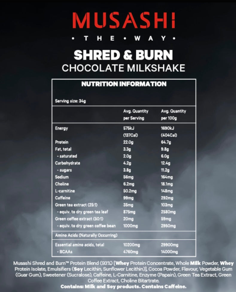 MUSASHI SHRED & BURN Protein Powder - Chocolate