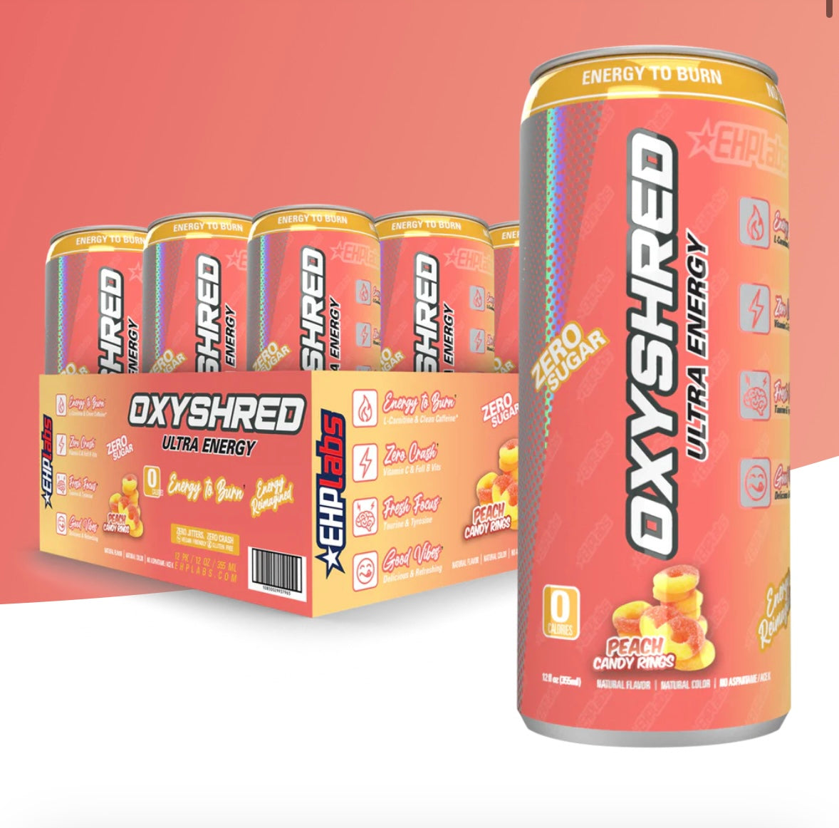 OxyShred Ultra Energy Drink RTD (12-Pack) - PEACH CANDY RINGS