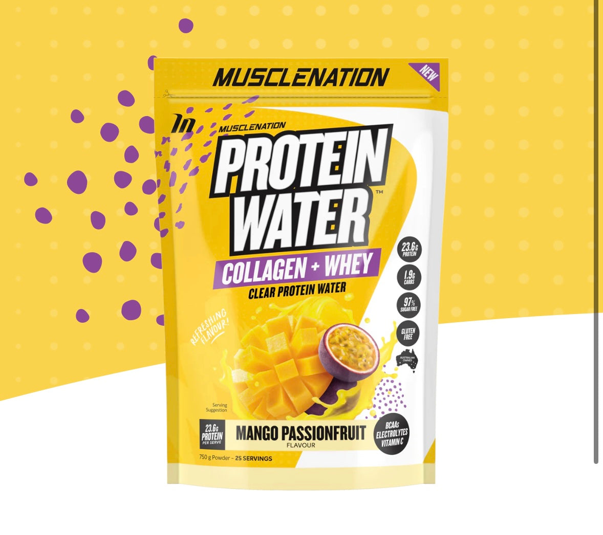 MUSCLE NATION PROTEIN WATER MANGO PASSIONFRUIT